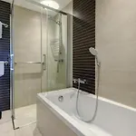 エステポナ市内中心部から徒歩5分の場所に位置する- Car Includedアパ-トメントは,施設内のの専用駐車場を提供しています. 電子レンジ,食器洗い機とやかんも台所にあります.